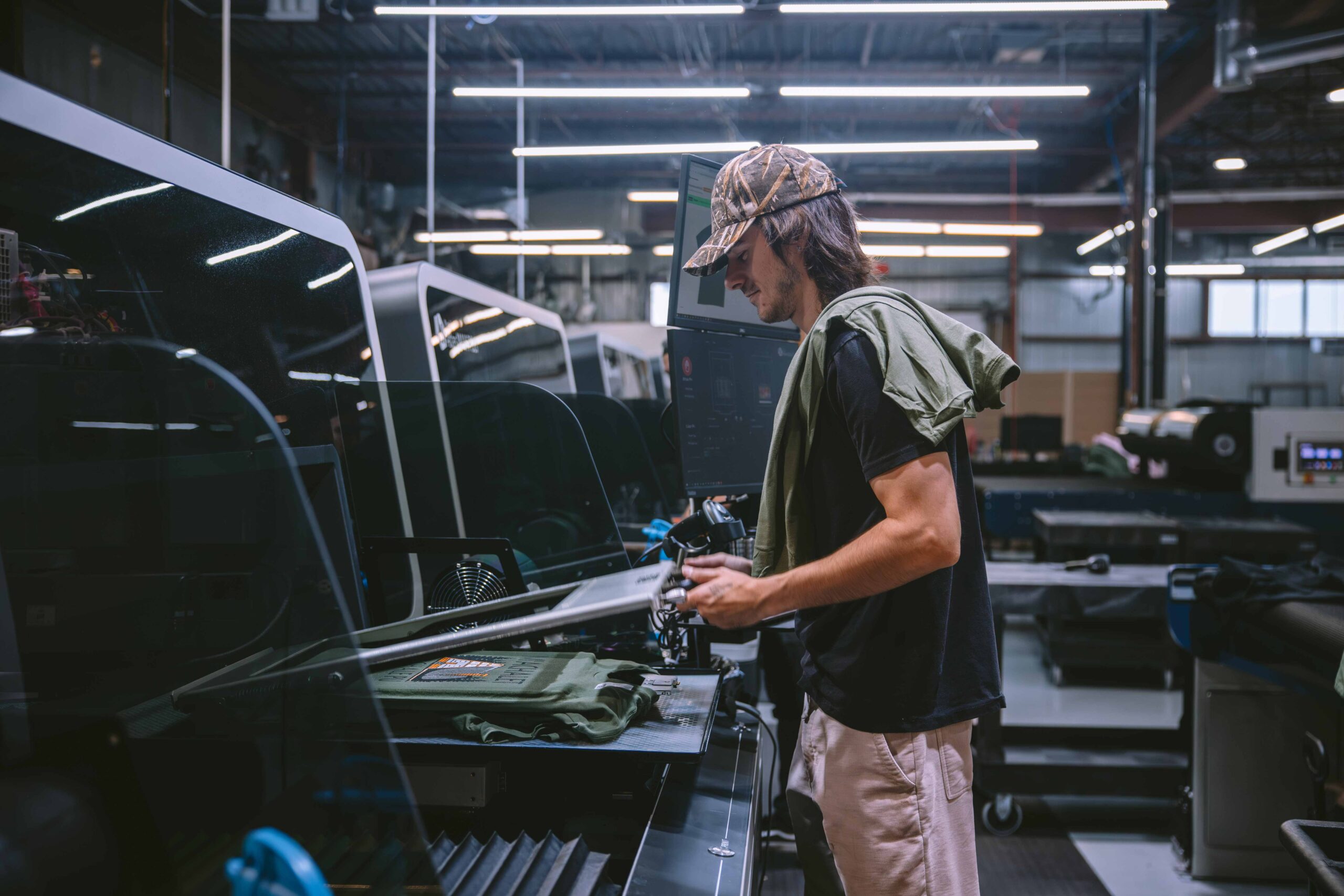 Professional direct-to-garment printing using our Kornit Atlas Max Poly machines with XDi technology. Perfect for detailed designs, unlimited colors, and soft-hand finishes. Our advanced fixation system eliminates pretreatment odors and boxes.
